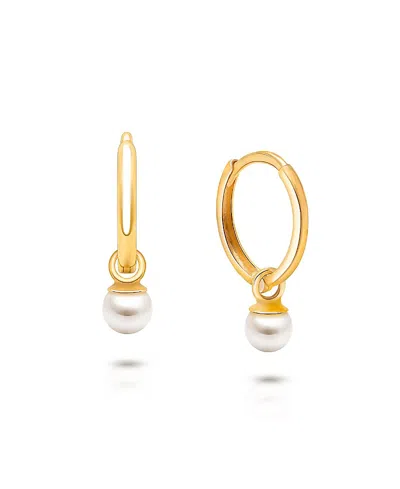 Girls' 14k Gold Pearl Drop Classic 11mm Huggie Hoop Earrings - Little Kid, Big Kid In K Yellow Gold