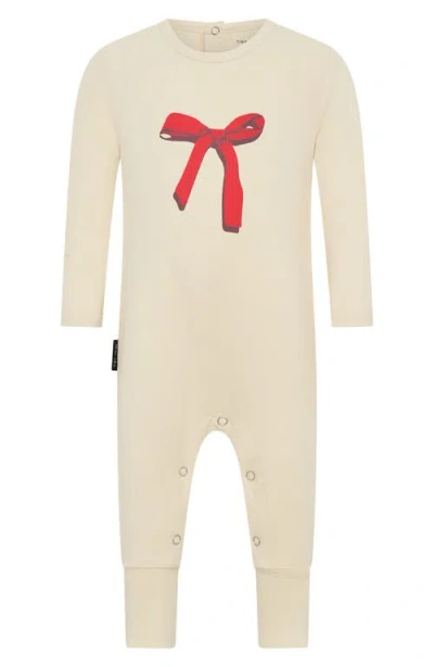 Babies' Bow Stretch Cotton Graphic Romper In White