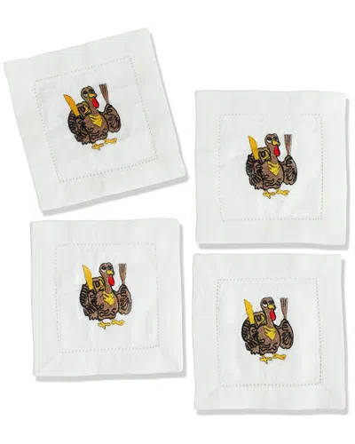 Set Of 4 Thanksgiving Turkey Cocktail Napkins In Brown