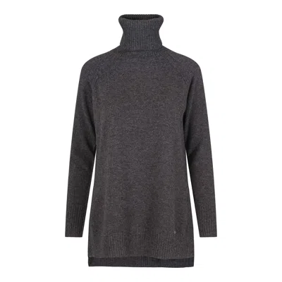 Women's Grey Abby A Line Long Turtle Neck Pullover, Charcoal Melange