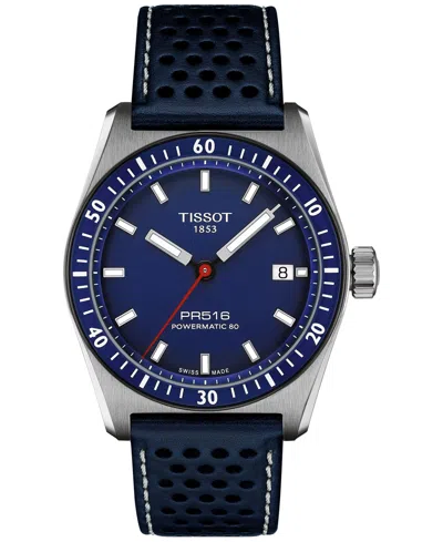Pr516 Powermatic 80 Automatic Blue Dial Leather Strap Unisex Watch T149.407.16.041.00 In No Color