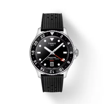 Pre-owned Seastar 1000 Quartz Gmt 40mm Black Dial Watch T120.852.17.051.00