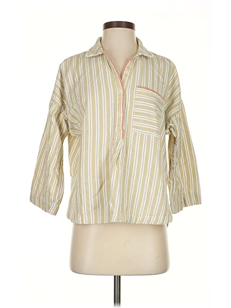 Pre-owned 3/4 Sleeve Button Down Shirt In Yellow