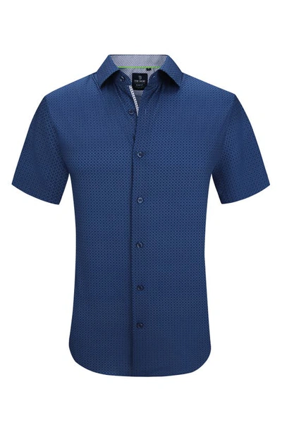 Slim Fit Performance Short Sleeve Geometric Button Down In Navy Blue