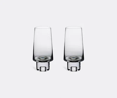 Puck Set Of Two Flute Glasses In Clear / Black Base