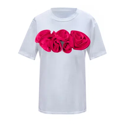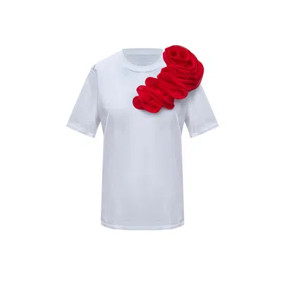 Women's Red / White Sequin Rose Off Shoulder Beach Cover Up In Multi