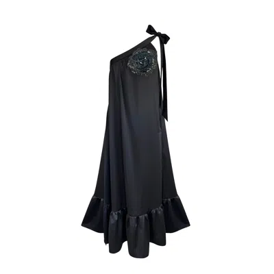 Women's Black / Grey Stunning Evening Bovary Glam Party Festive Couture Shantung Gown In Black/grey