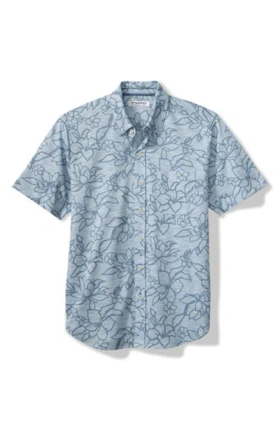 Hibiscus Hues Short Sleeve Silk Button-up Shirt In Blue