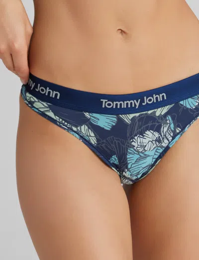 Women's Cool Cotton Thong, Lace Waist In Blue