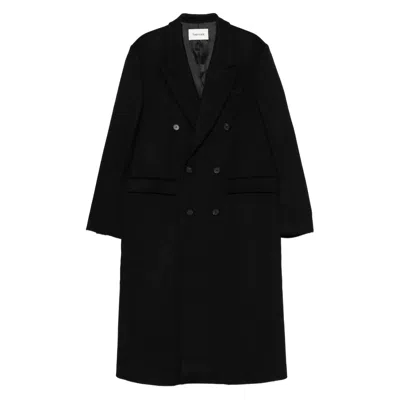 Wide-leg Black Wool Blend Trousers With Pleated Front