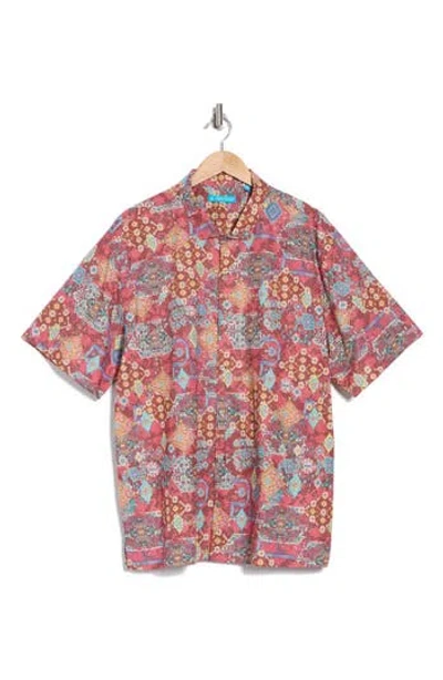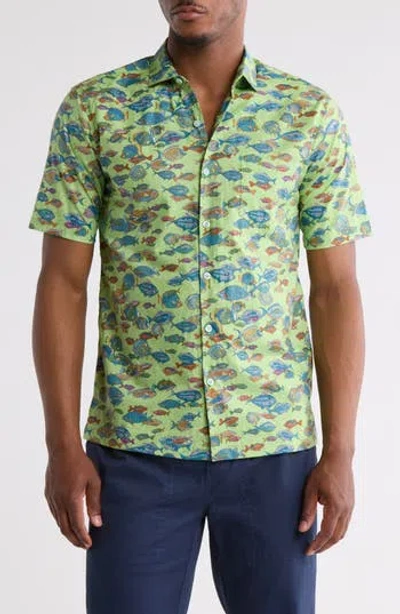 Fish Finder Short Sleeve Cotton Button-up Shirt In Surf