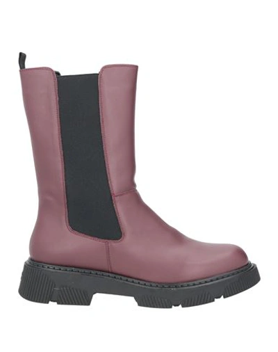 Woman Ankle Boots Burgundy Size 10 Soft Leather, Textile Fibers In Red