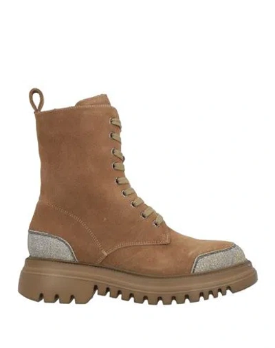 Studio Woman Ankle Boots Sand Size 7 Leather, Textile Fibers In Brown