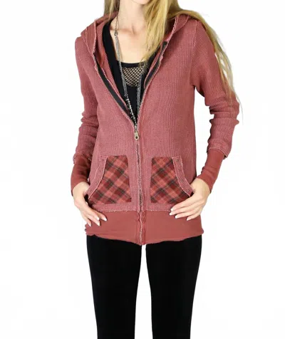 90's Seattle Thermal Tunic Hoodie In Vintage Burgundy Red In Pink
