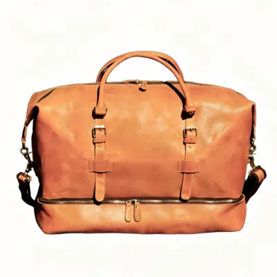 Genuine Leather Duffel With Suit Compartment - Light Brown