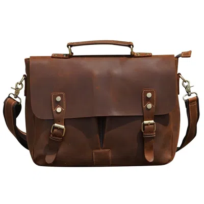Brown Genuine Leather Briefcase With Front Leather Patch