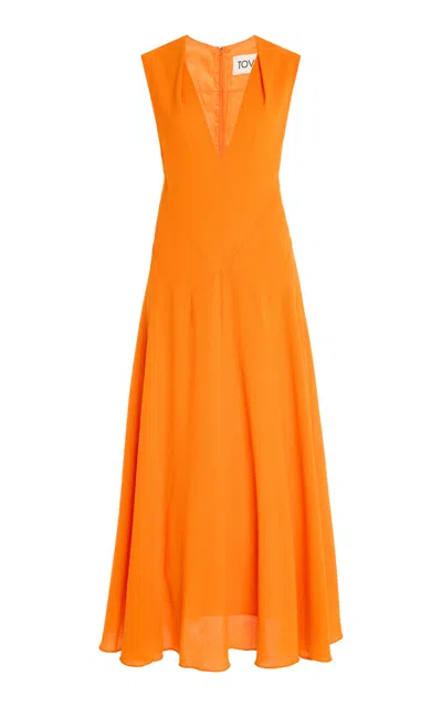 Mahany Twist Front Smocked Waist A-line Midi Dress In Red