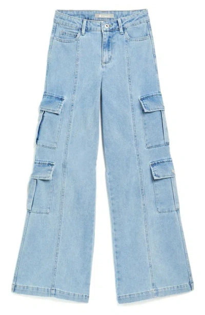 Kids' Wide Leg Cargo Jeans In Light Indigo