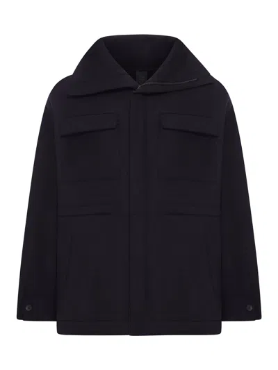 Loose Fit Zip-up Sahara Jacket In Virgin Wool Cloth In Black