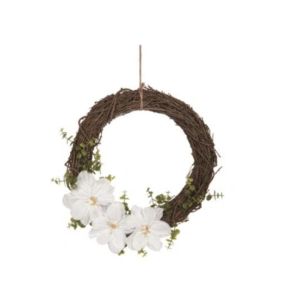 Natural Fiber 19.69 Inch Brown Spring Magnolia And Twig Wreath For Home Decor And Seasonal In Multi