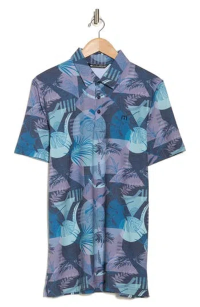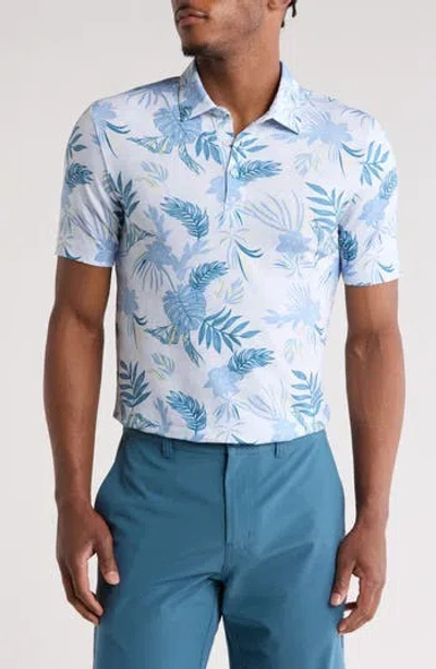 Featherweight Island Print Golf Polo In Heather Light Grey
