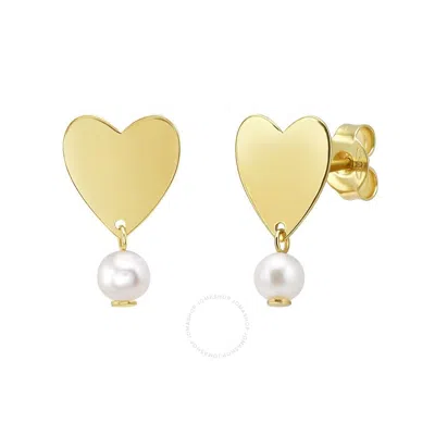 14k Yellow Gold Heart And Pearl Drop Stud Earrings