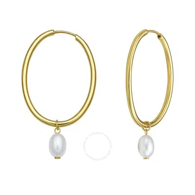 14k Yellow Gold Pearl Drop Oval Hoop Earrings