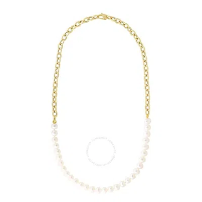 14k Yellow Gold Chain Link & Pearl Necklace In Multi