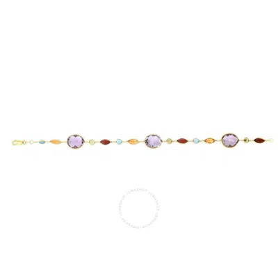 14k Yellow Gold Multicolor Gemstone Inlay Oval Pendant Necklace