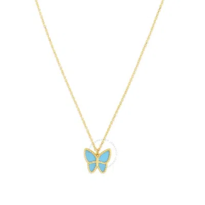 14k Yellow Gold Turquoise Paste Butterfly Pendant Necklace