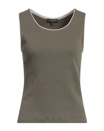 Woman Tank Top Military Green Size 8 Cotton, Viscose, Elastane, Nylon, Lurex