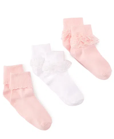 Kids' 3-pack Decorative Socks, Little Girls & Big Girls In Pink,white