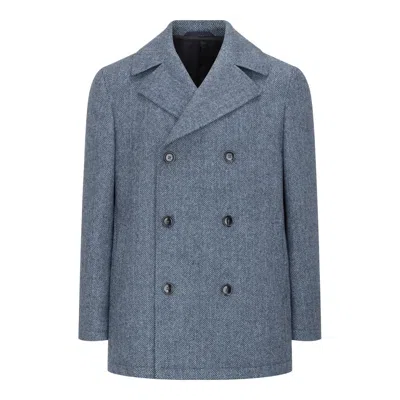 Men's Blue Denim Herringbone Cathal Irish Tweed Peacoat