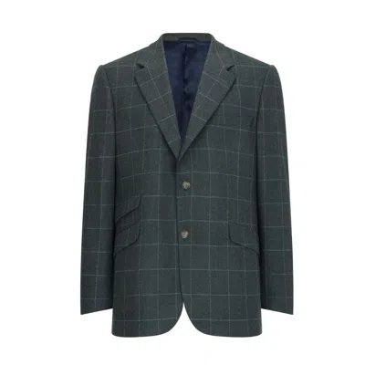 Men's Green Teal Windowpane James Classic Tweed Jacket
