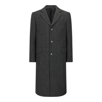 Men's Grey Charcoal Herringbone Patrick Overcoat In Gray