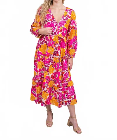 Mix Print Contrast Cowl Neck Tunic Sweater In Red Multi In Green