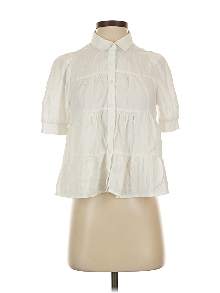 Pre-owned Short Sleeve Blouse In White