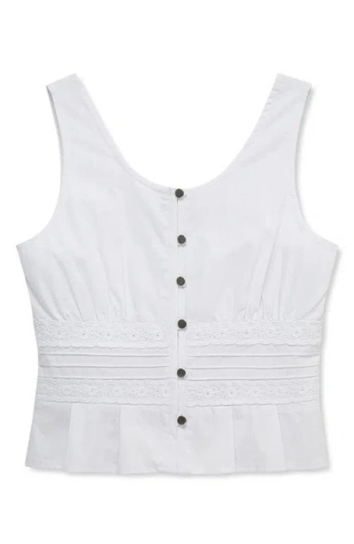 Kids' Babydoll Embroidered Cotton Blend Tank Top In White