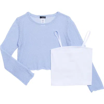 Kids' Long Sleeve Knit Top & Tank Set In Light Blue