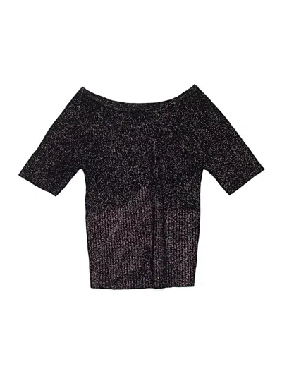 Pre-owned Kids' Short Sleeve Top Black Metallic Pattern Off The Shoulder Neckline Tops