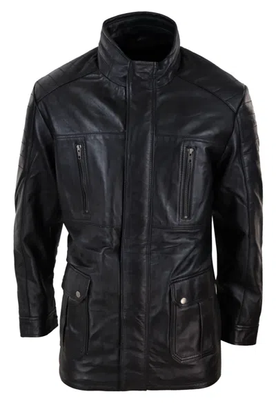 Long 3/4 Double Breasted Leather Dr Who Jacket In Black