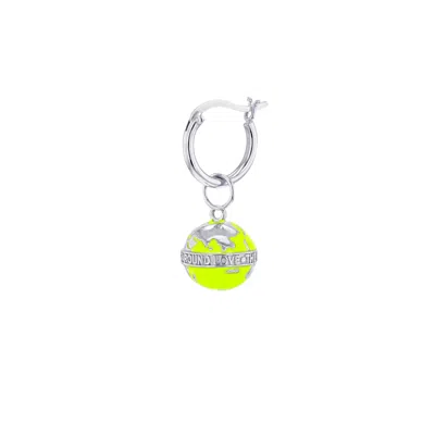 Women's Silver / Green Mini Globe Charm In Neon Lime Green & Sterling Silver On A Silver Hoop In Gold