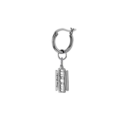 Women's Gun Metal Grey Sterling Silver Mini Razor Blade Charm On Gun Metal Hoop In Metallic