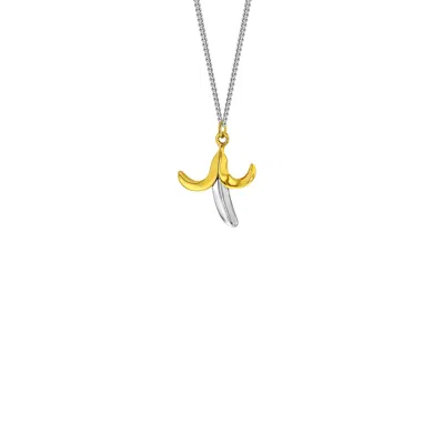Men's 2 Tone 18kt Gold-plated & Sterling Silver Mini Banana Pendant On Silver Chain