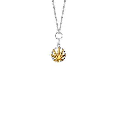 Men's Sterling Silver & 18kt Gold Plated 2 Tone Happy Leaf Mini Pendant On Silver Chain In Burgundy