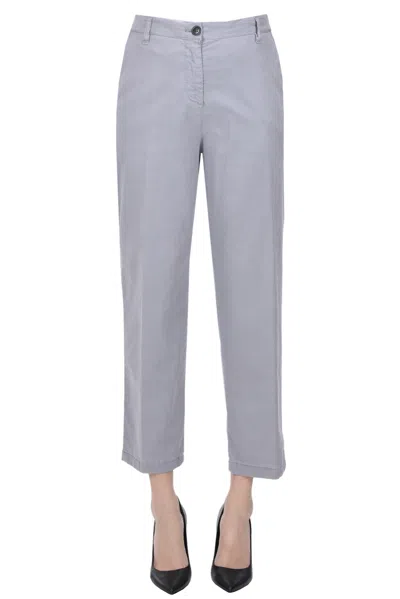 Stretch Cotton Chinos Pants With Murble Motif In Blue