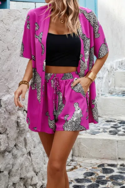 Two Piece Leopard Print Drop Shoulder Pockets Set In Purple