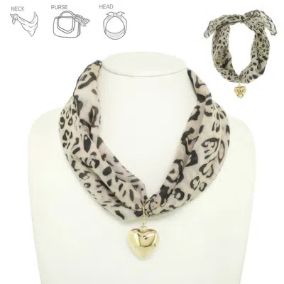 Graphic Print Heart Pendant Scarf Tie Necklace In Brown