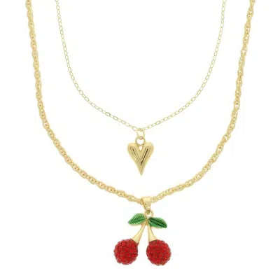 Jeweled Red Cherry Pendant Necklace In Gold