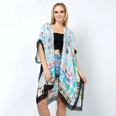 Tie Dye Boho Printed Cover Up Kimono Poncho In White